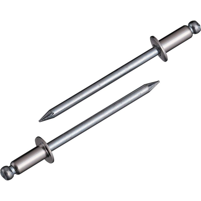- Clamping plate thickness: 0.1 - 0.2 inches (3.2 - 6.4 mm); Rivet length: 0.4 inches (9.2 mm); Flange diameter: 0.2 inches (6.4 mm); Rivet diameter: 0.1 inches (3.3 - 3.4 mm); Shear load (N): 92.5 inches (2,700 mm)