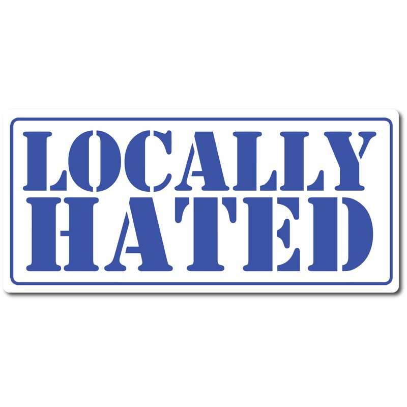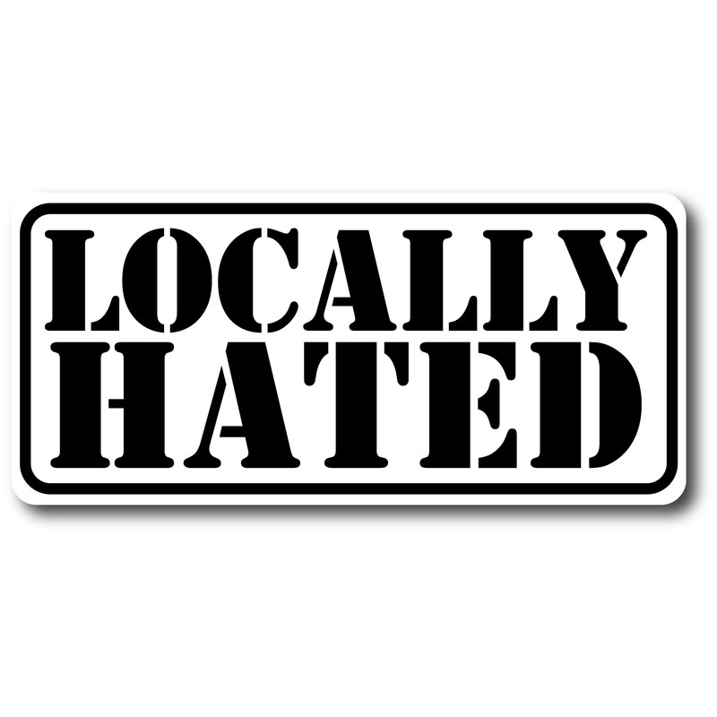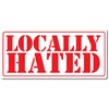 Locally Hated - Calcomanía de látex optimizada para auto y portátil, resistente a la intemperie, resistente a la intemperie, de larga duración (5.5 x 2.5, rojo con fondo blanco)