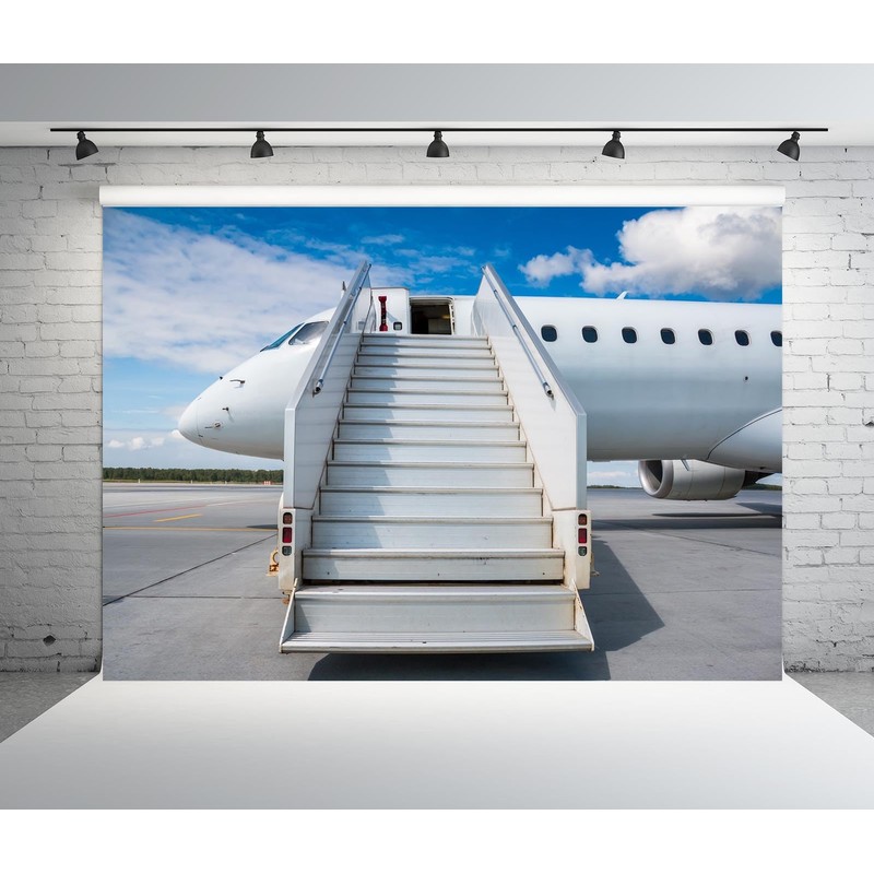 Loccor 7x5ft Fabric Airplane Backdrop Airplane Boarding Backdrop Passenger Aircraft with Boarding Steps Airport Apron Background Airplane Travel Party Decorations Photo Booth Studio Props