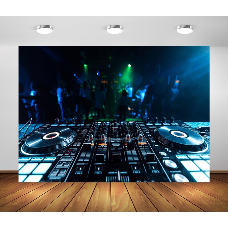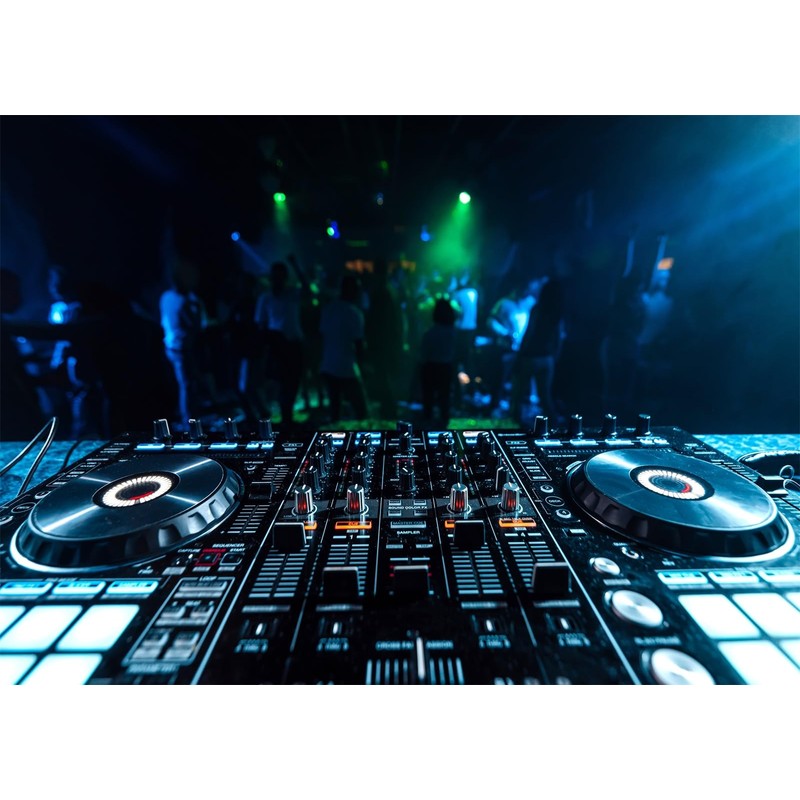 Loccor 7x5ft Fabric DJ Music Mixer Backdrop Professional DJ Mixer Controller Nightclub Dancing People Background for Disco Party Decorations Photo Shoot Studio Props