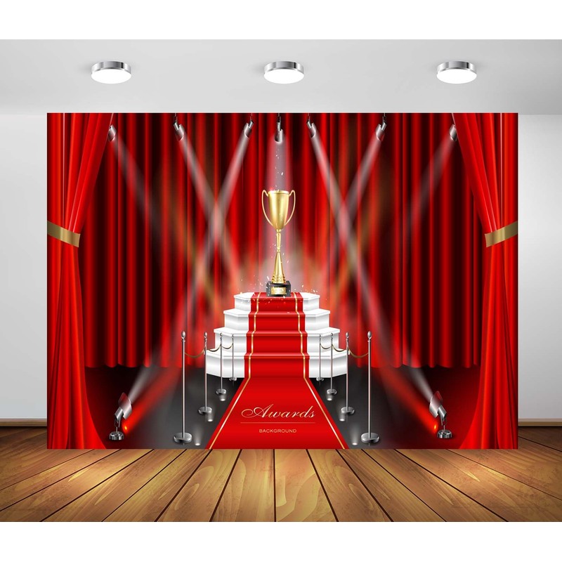 Loccor 7x5ft Fabric Red Curtain Backdrop Red Carpet Awards Background Golden Trophy Events Spotlights Show Banner Background Awards Ceremony Party Decorations Photo Booth Shoot Studio Props