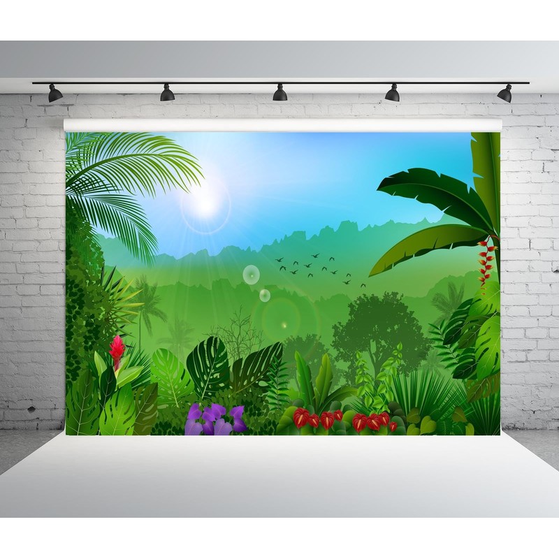 Loccor 9x6ft Fabric Cartoon Rainforest Backdrop Jungle Green Tropical Leaves Botanical Background Natural Forest Backdrop Kids Jungle Safari Theme Birthday Party Decorations Photo Props