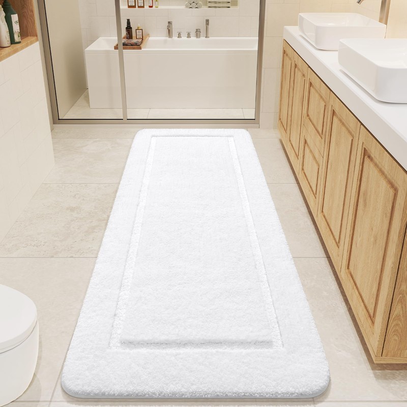 - Super Absorbent and Fast Drying: This long bathroom rug is arranged with dense microfiber tufts, these microfiber tufts can help you absorb water from your feet quickly; This luxury bathroom rugs is not only highly absorbent, it also drying quickly
