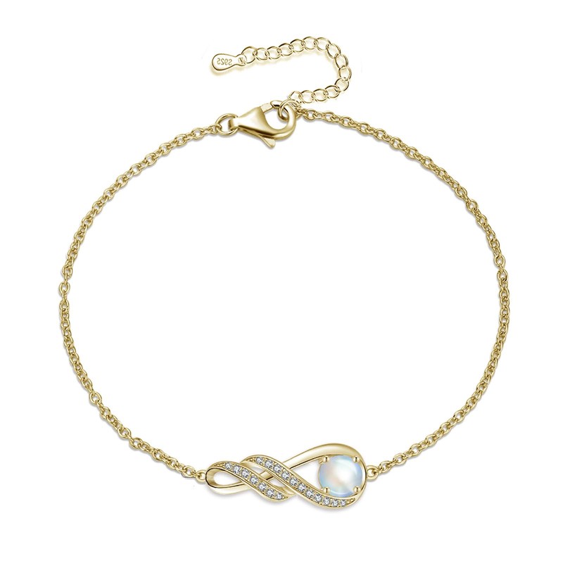 LOCIBLO June Birthstone Bracelets for Women 925 Sterling Silver Synthetic Moonstone Bracelet Gold Plated Infinity Pendant Jewellery for Her, 6.7"+1.2"