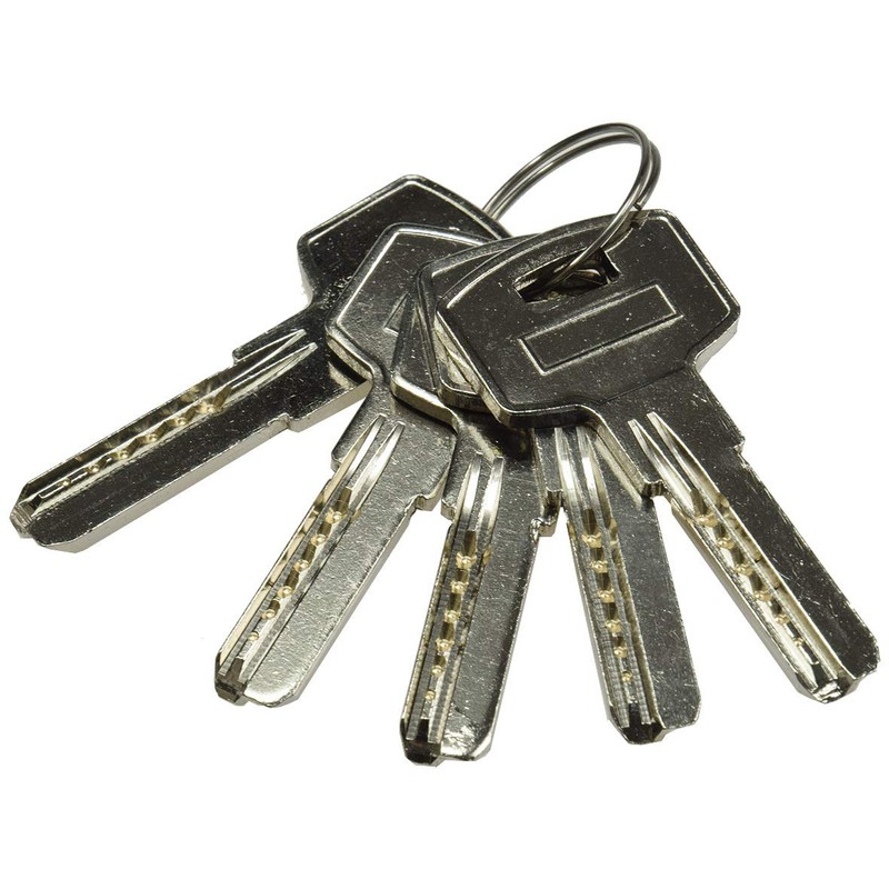 • Profile cylinder solid brass with nickel coating, key thickness 2.4 mm, including 5 security keys with hollow holes