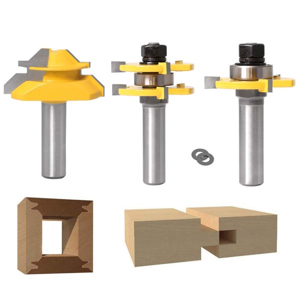 Lock Miter 45 Degree Joint Router Bits + 2Pcs Tongue and Groove Set [1/2-Inch...