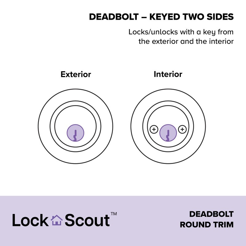 Lock Scout Deadbolt with Round Trim, Keyed 2 Side, Satin Nickel Finish