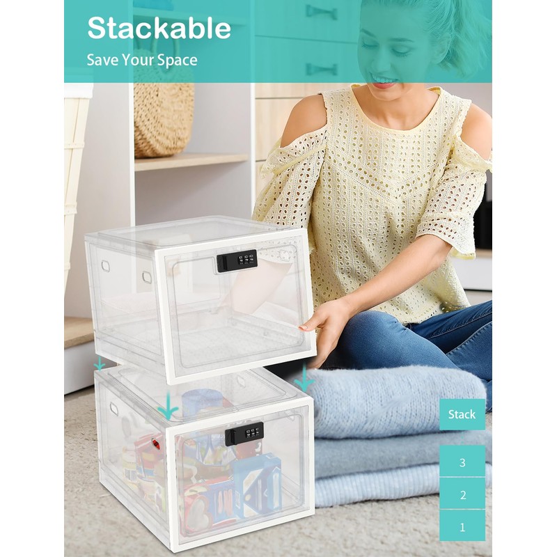 - Stack Them Up – The Clear Plastic Lockable Storage Container Bin has grooves on the body to create a secure stacking experience. The heavyduty lidbody construction of the containers stacks perfectly to one another to save space and stay organized in the cupboard or refrigerator.