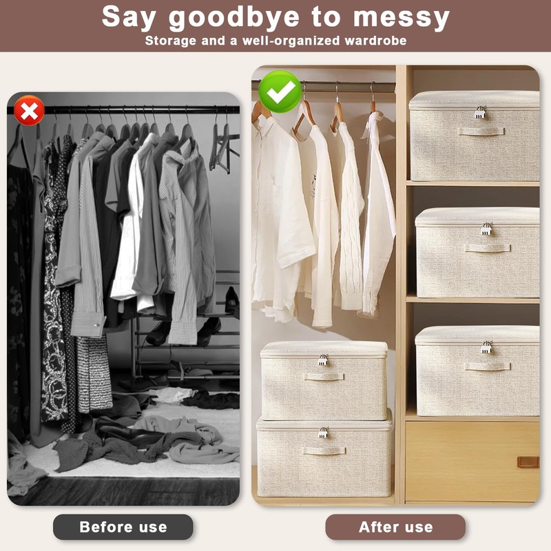 - Stable and waterproof: high-quality material (wrinkle-free, odourless) with PP reinforcement, nano coating and Oxford inner lining. This box with lid is extremely sturdy, carries a lot, does not deform and effectively protects against water and dust - perfect for long term storage.