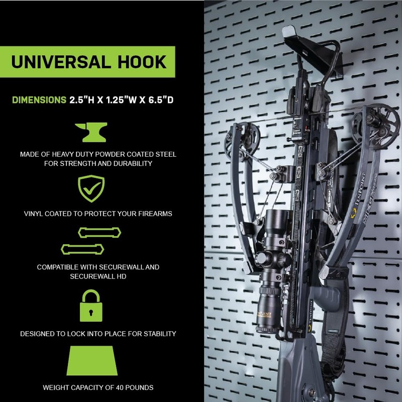 Lockdown Securewall Universal Hook with 40 Pound Capacity, Solid Steel Construction and Custom Storage for Firearms, Vaults, and Gun Rooms