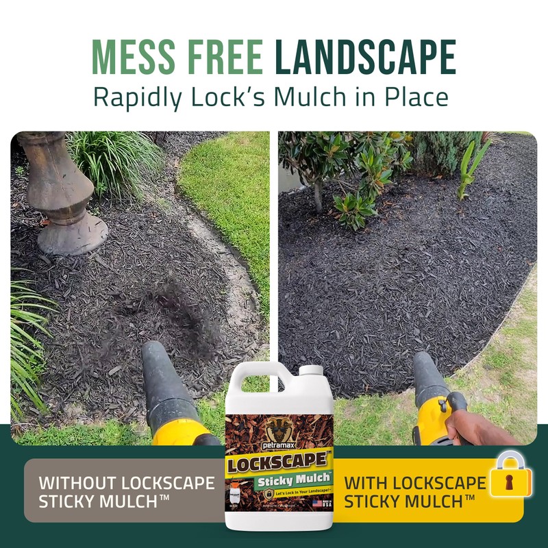Lockscape Sticky Mulch Glue for Landscaping (64 Ounce) - Lasts Up to 2 Years, Non-Toxic, Ultra Concentrated Landscape Binder - Strong Mulch and Pine Straw Glue for Landscaping, Pine Straw & More