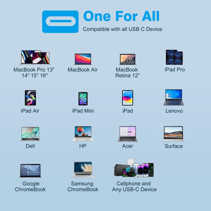 - Great for Both USB C and Mag -Safe 3 Magnetic Port MacBook: widely compatible with MacBook Pro 16 15 inch; MacBook Pro 13 inch (M2, 2022) (M1, 2020) (intel 2020 2019 2018 2017 2016); MacBook Pro 14 inch (M4 2024) (M3 2023) (M2 2022) (M1 2021); MacBook Air 13 inch (M1 2020) (Intel 2020) (Intel 2019) (Intel 2018); MacBook Air 13.6 inch (M3 2024) (M2 2022); MacBook Air 15 inch (M3 2024) (M2 2023); Model a2141, a2147, a2158, a2159, a2166, a2182, a2251, a1707, a1719, a1990, a1706, a1708, a1718, a1947, a1989, a2289, a2338, a1932, a2164, a2179, a2337, a2676, a2579, a1534, a2681, a2941, a3113, a2442, a2918; iPad Pro 13 12.9 11 inch, iPad Air / Mini, iPhone 15, 16, HP, Dell, Lenovo, Cellphone...