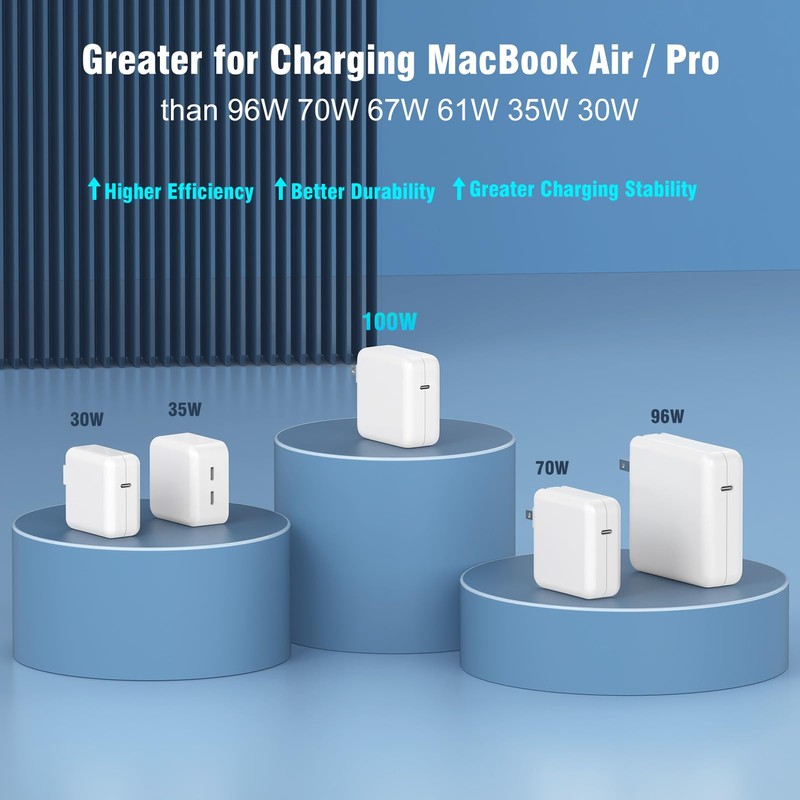 - Much Smaller but More Powerful: can cover and output 100W 96W 87W 70W 67W 65W 61W 45W 35W 30W 20W, but our 100W is more efficient and stable and faster than original charger. And it’s super compact, much smaller than original 96W.