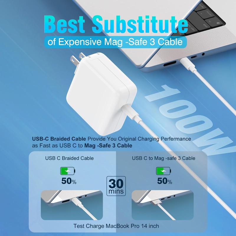 - Super Fast Charging: fast charge your MacBook Pro or MacBook Air up to 50% in only 30mins, as fast as using Mag -Safe 3 Cable while charging magnetic port MacBook, meet the high-speed processing capacity of M1, M2, M3 M4 Pro Max chip.
