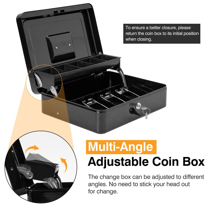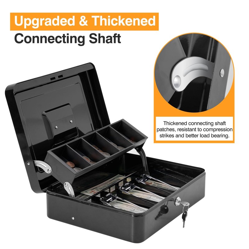- USER-FRIENDLY DESIGN & 5 YEARS AFTER-SALE SERVICE: Experience the convenience of our tiered tray design, providing easy sorting and organization of coins. The cantilever coin tray automatically opens when the cash box is opened, while four spring clips secure banknotes. Rest easy with our 5 YEARSAFTER-SALE SERVICE, try our best to ensure your satisfaction for years to come