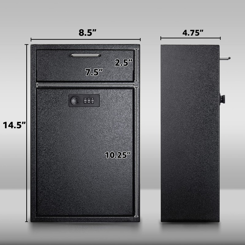 • FOR MULTIPLE LOCATIONS: This wall mount cash box is great for commercial and residential spots. Choose to use it as rent lock box for your apartment building, locked payment box for your office unit, locking key dropbox for after hours, or front door mailbox for your home.