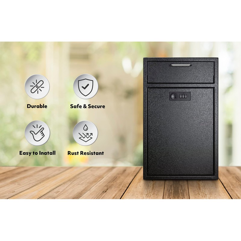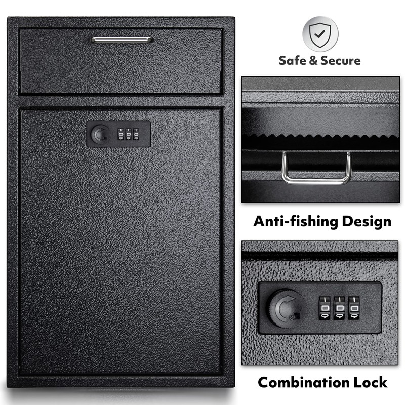 • LOCKED AND ANTI-THEFT: This security dropbox comes with a built-in combination lock, and the anti-fishing design inside makes it impossible for unauthorized personnel to take out the items. Our deposit box with lock will keep your private and important goods safe and secured.