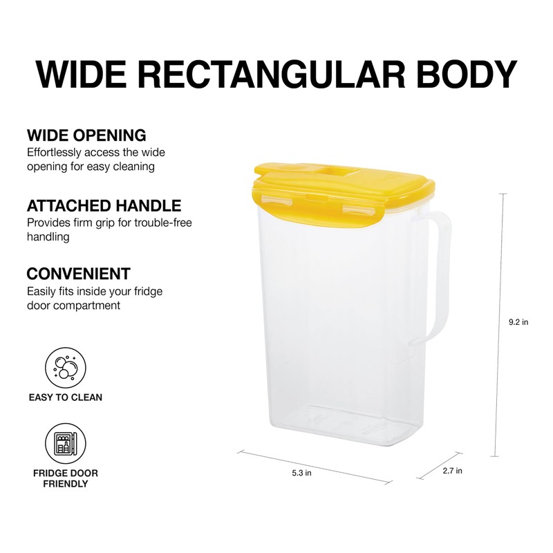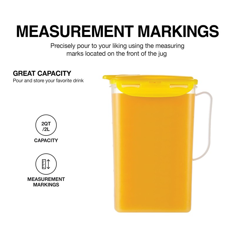 • Multiple Options: Available in two sizes (2 QT/2L, 3 QT/3L) and seven colors (Blue, Green, Purple, Red, White, Yellow, Clear). Color your fridge with LocknLock Fridge Jug.