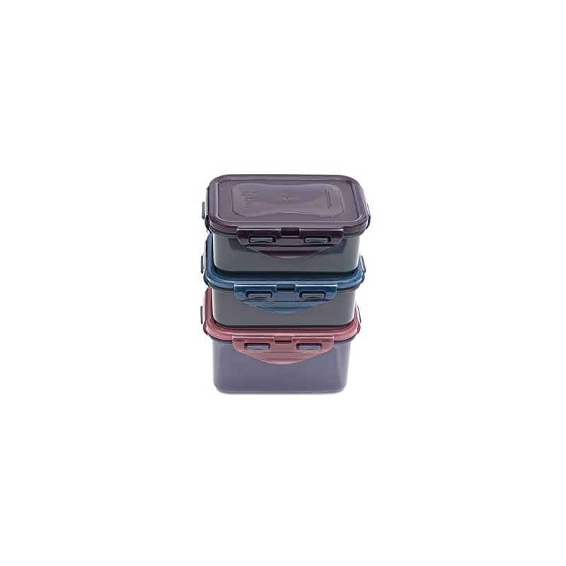 LocknLock Eco Food Storage Container Set of 3 with Lids - Rectangular Container Set 470ml / 2 x 350ml, Airtight, Watertight, BPA Free & Dishwasher Safe