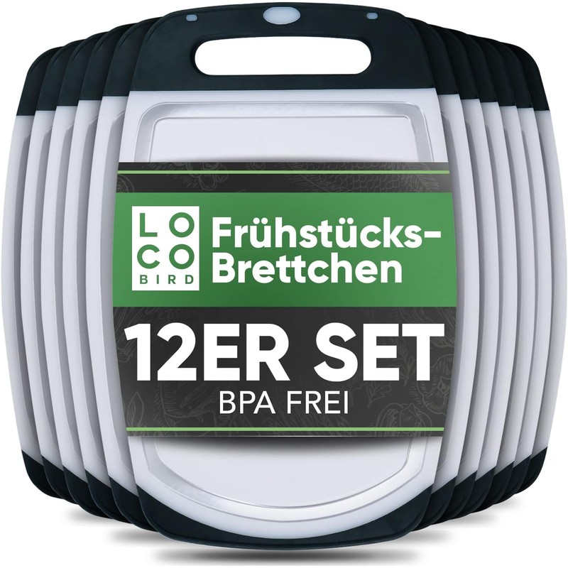 Loco Bird Set of 12 Breakfast Boards Made of BPA Free Plastic - 22 x 14 cm - Dishwasher Safe - Chopping Boards with Non-Slip Handle - Board - Antibacterial Breakfast Board