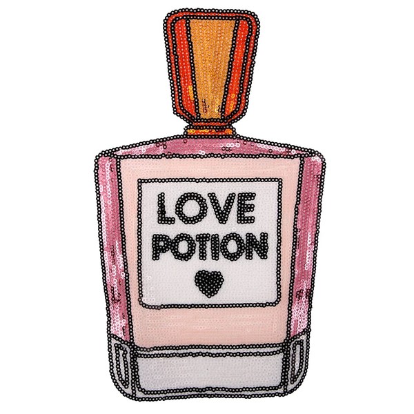 Locomo Sequin Perfume Sew Iron On Patch Sequined Large Paris Love Potion Bottle Motif Applique for Women Clothing Jacket T Shirt Coat Decoration