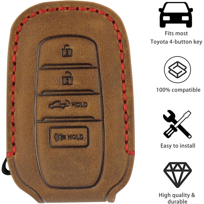 LOCOY Key Fob Cover for Toyota Tundra Accessories 2022 2023 2024 2025, for Tacoma 2024 2025 Leather Key Cover, for Camry 2025 Key Protector Case, Key Fob Case (Brown Leather Red Stitches, 1pc)