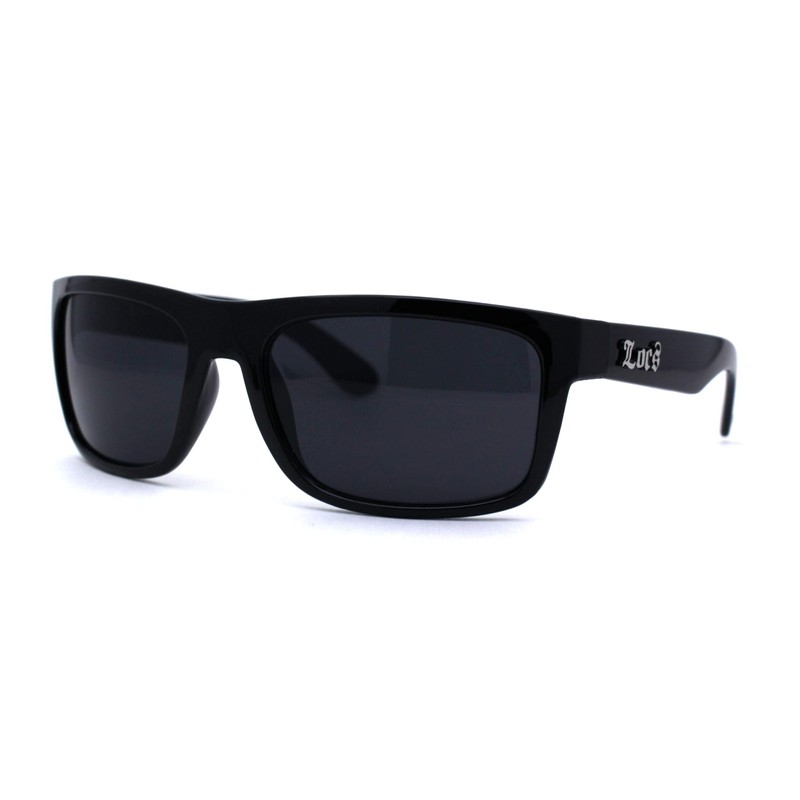 Men's classic cholo gangster all black Locs large rectangular plastic sunglasses.