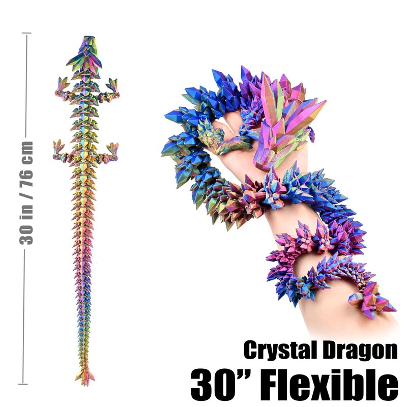 LOCYFENS Large 30" 3D Printed Dragon, Articulated 3D Dragon Toys, Long Crystal Dragon Rainbow Red Yellow Blue