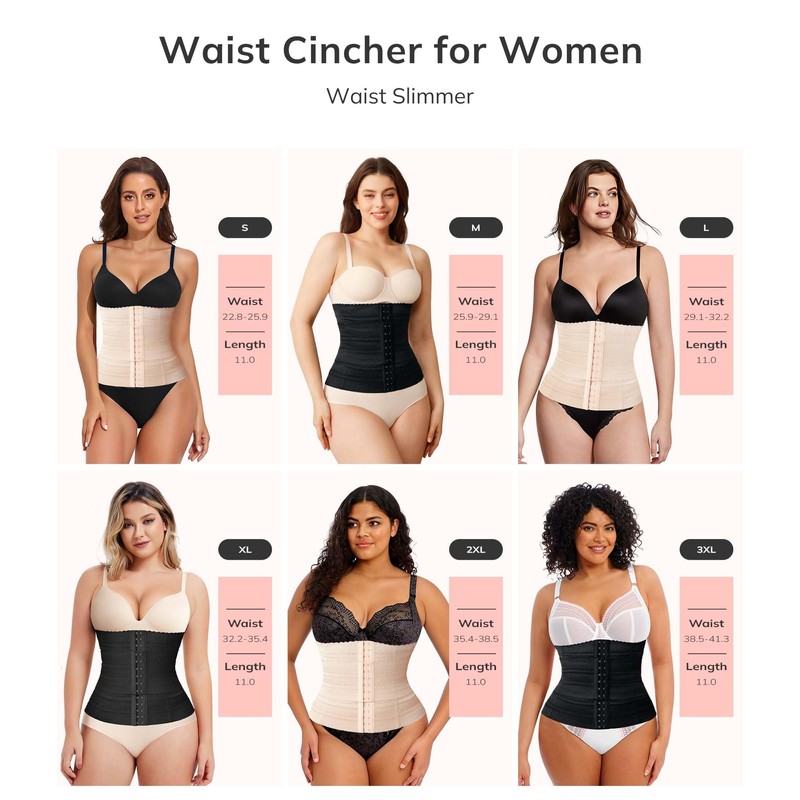- Size Gide. Size-S=(Waist 22.8"-25.9"), M=(Waist 25.9"-29.1"), L=(Waist 29.1"-32.2"), XL=(Waist 32.2"-35.4"), 2XL=(Waist 35.4"-38.5", 3XL=(Waist 38.5"-41.3"). All Size Length- 11.0". Measure your waist and refer to the size chart. Made of high compression and enhanced elastic fabric, LODAY waist trainer for women will provide a snug fit that offers more shaping. If you’re between sizes, we recommend choosing the larger size for optimal comfort.