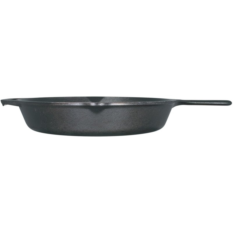 - The Lodge Cast Iron 12-inch Skillet is a multi-functional cookware that works wonders with slow-cooking recipes and all your favorite foods. Fry up a mess of catfish, roast a chicken, or bake an apple crisp in this generous 12-inch pan that features two handles for heavy lifting and two subtle side lips for pouring.