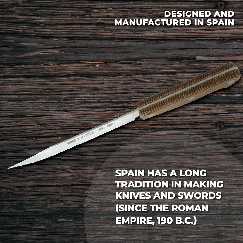 | Material Type: | Molybdenum Vanadium Stainless Steel, Layered Wood Handle |