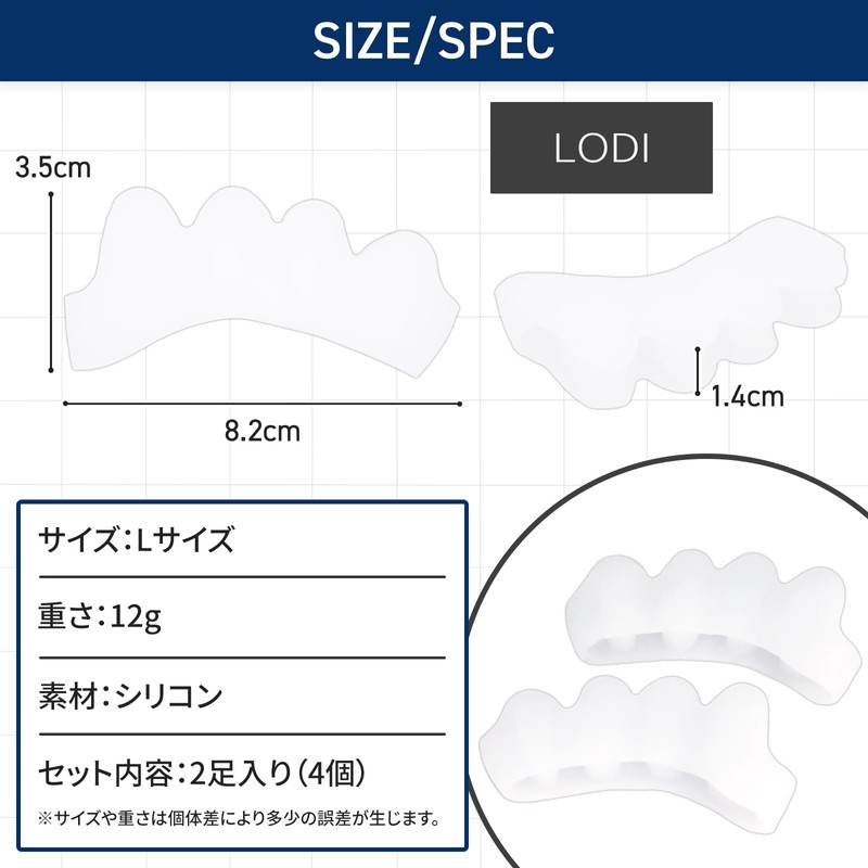 LODI 2足セット 足指 広げる サポーター 24.5cm~26.5cm 推奨 Lサイズ