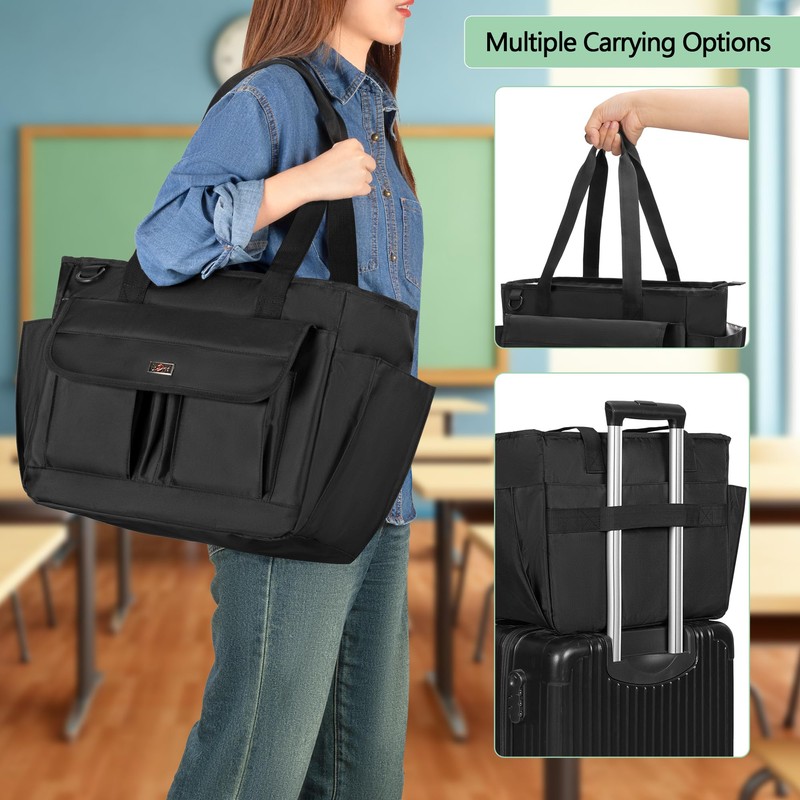 - Large Space: The size: 16''*7.1''*12.7'' ; The teacher tote bag keeps you organized and is designed for storing clips and teacher necessities; It has enough space to keep your workspace tidy and efficient