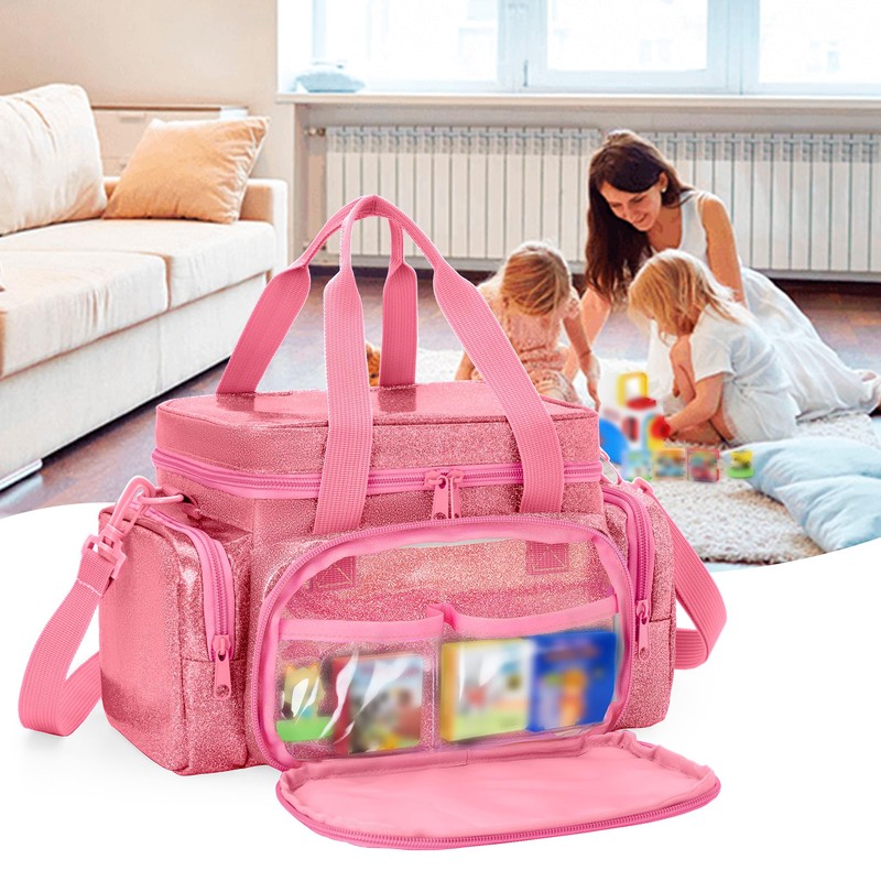 LoDrid Storage Bag Compatible with Little Tikes Story Dream Machine Starter Set, Carrying Case with Multiple Pockets for Accessories with Handle and Shoulder Strap, Pink, Bag Only