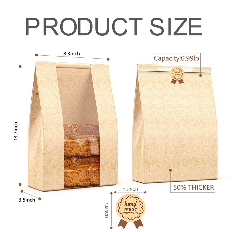 - Clear Window for Presentation: Showcase your homemade loaves with the transparent plastic window, providing a professional, gift-ready look.these bags combine smart functionality with a professional aesthetic to elevate your baked goods