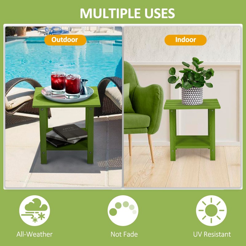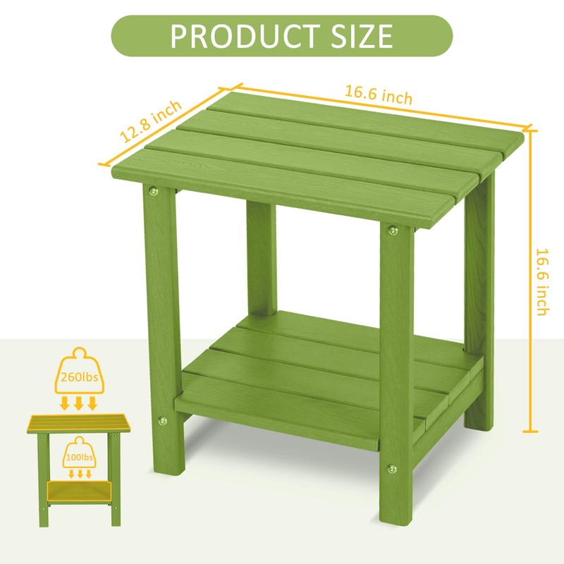 LOENIY 2 Tier Outdoor Side Table with Wood-Like Grain, 16.6" HDPE Adirondack Table Patio Side Table, Weather Resistant End Table for Pool, Patio & Porch, Small Outdoor Table (Lime, Rectangle)