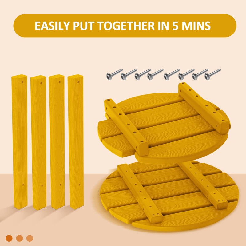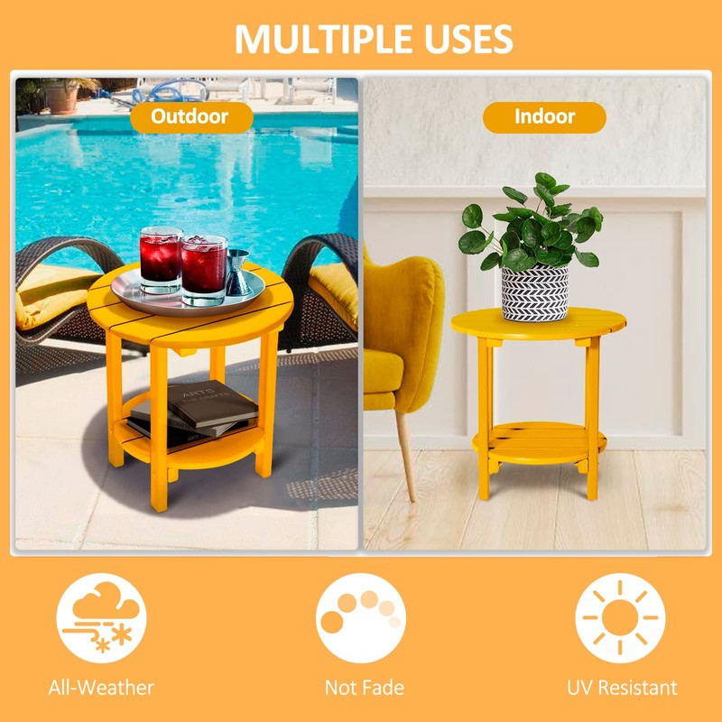 LOENIY 2 Tier Round Outdoor Side Table with Wood-Like Grain, 17.7" HDPE Adirondack Table Patio Side Table, Weather Resistant End Table for Pool, Patio & Porch, Small Outdoor Table (Tangerine, Round)