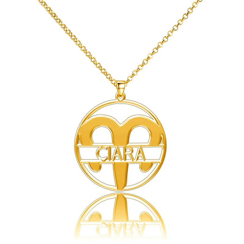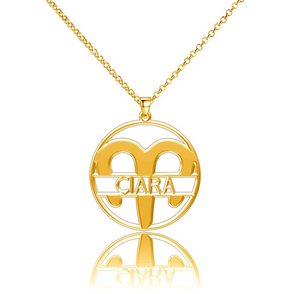 LoEnMe Jewelry Silver Plated Aries Woman Custom Made Engraved Sterling Silver Customized Name Necklace
