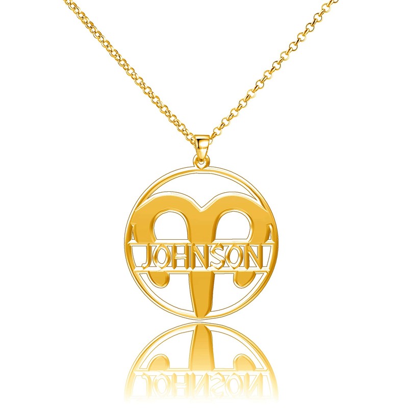 LoEnMe Jewelry Silver Plated Aries Woman Custom Made Engraved Sterling Silver Customized Name Necklace