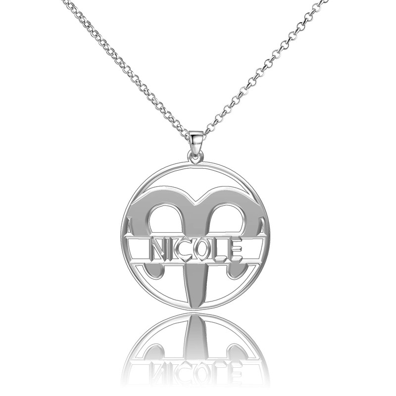 LoEnMe Jewelry Silver Plated Aries Woman Custom Made Engraved Sterling Silver Customized Name Necklace