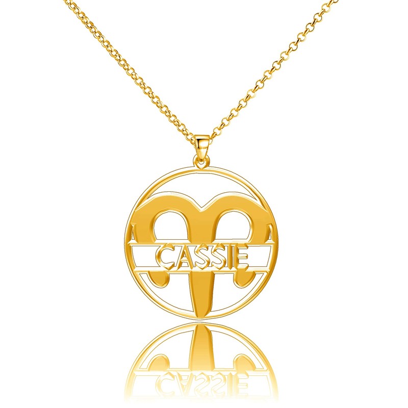 LoEnMe Jewelry Zodiac Signs Aries 925 Name Personalized Women Custom Name Necklace