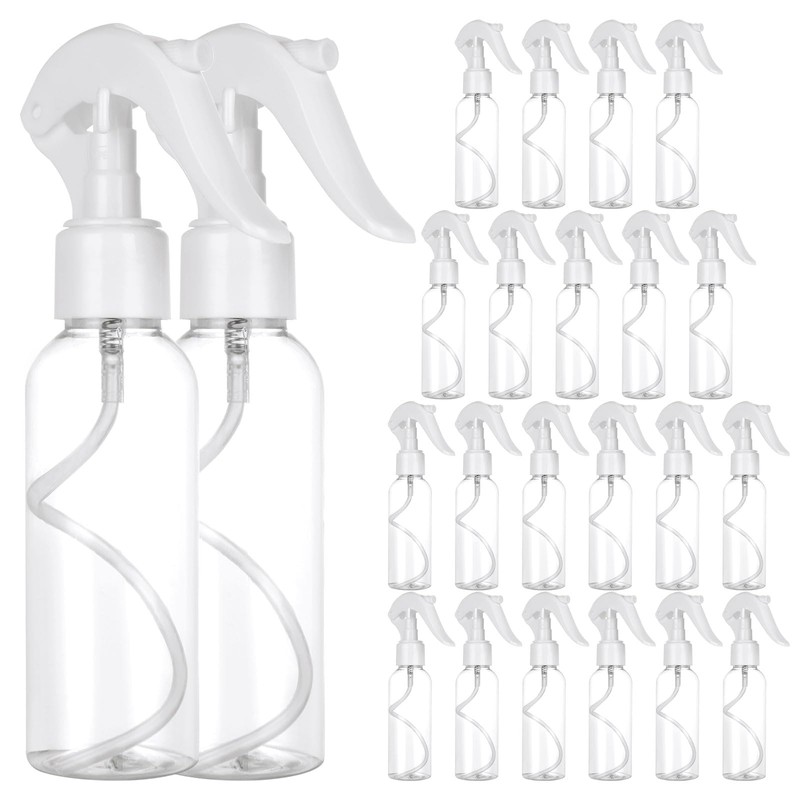 LOEQIAN 24 Pack Clear Spray Bottle, 3.5oz/100ml Plastic Fine Mist Travel Size Empty Bottles, Refillable Sprays Container for Kitchen Home Office Cleaning, Gardening, Cooking