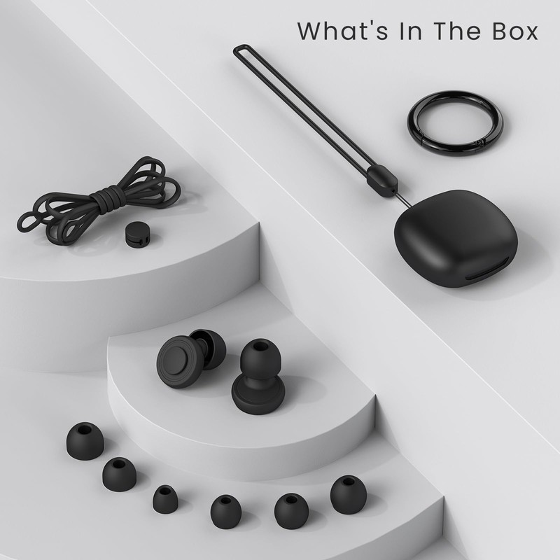 - What's in the Package:1 pair of Earplugs;4 sets of Bullet-shaped Eartips(S/M/M/L); 3 sets of Bowl-shaped Eartips(S/M/L);1 piece of Connector Cord & Cable Buckle; 1 piece of Plastic Carring Plastic Box & Hanger Rope; 1 piece of Round Keychain Ring.