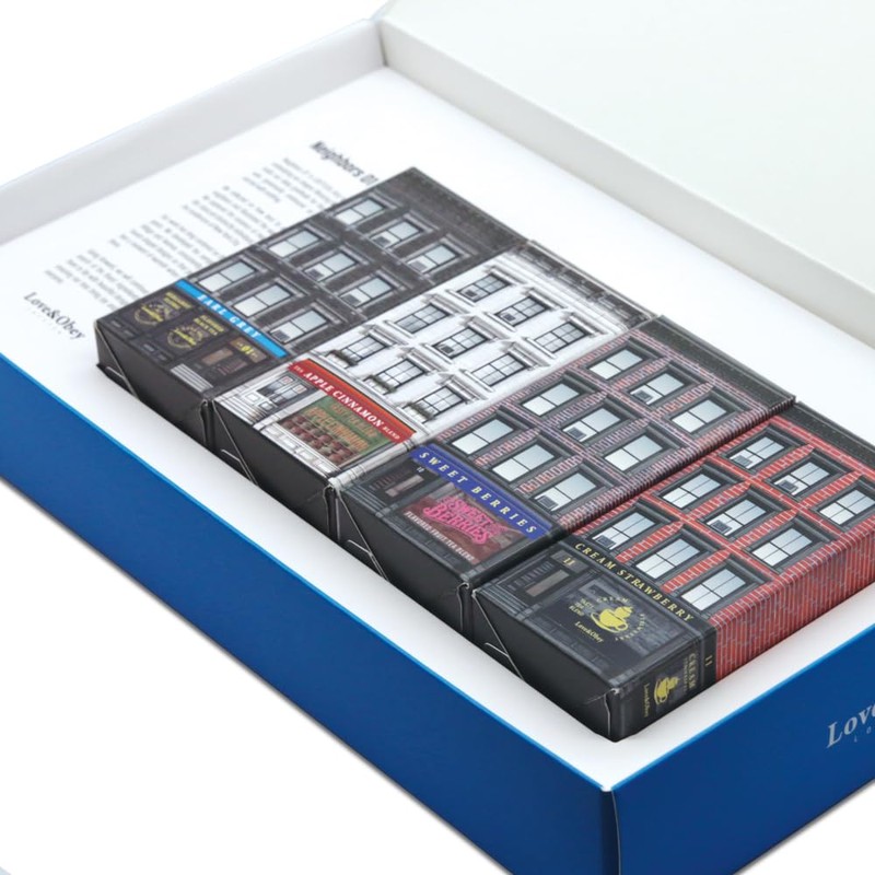 LOEYTEA Neighbors 01 Tea Sampler Gift Set – Earl Grey & Fruity Blends with Decorative Brick House Artwork