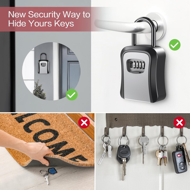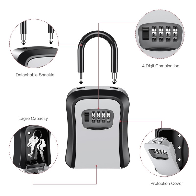 - 【Sturdy & Environmentally Friendly】Made of zinc alloy and factory plastic, this key lock box is weatherproof, not easy to damage, and can be used outdoors well. In addition, it adopts eco-friendly paint and will not be harmful to the human body.
