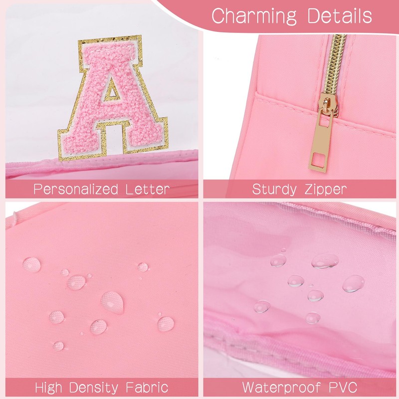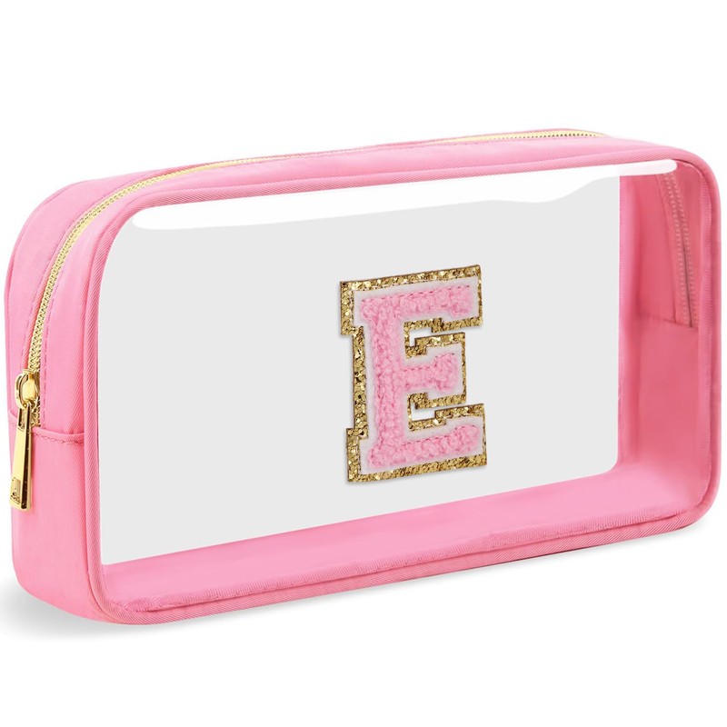LOFOWN Initial Clear Makeup Bag Small Cosmetic Bag Travel Toiletry Bag Clear Zipper Pouch Purse Organizer Bags for Women (PINK-M, E), PINK-M, E, Initial Makeup Bag
