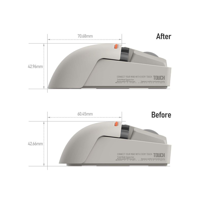 • PBT Material: LOFREE passes on the dye-sub pbt's and replaceable keycap set's concept of TOUCH keyboard to this wireless mouse. PBT, the non-glossy, non-sticky and skin-friendly texture, is carefully used on MB1, MB2 and upper case, ensuring a reliable grip and smooth ergonomics