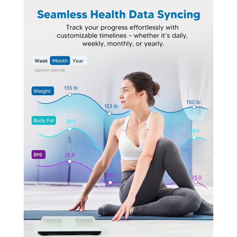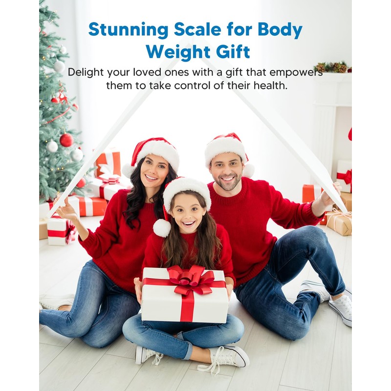 - Safe & Durable Construction: The body composition scale is crafted from robust tempered glass and equipped with anti-slip pads and curved edges; This digital scales for body weight not only provides precise readings but also offers safety and durability