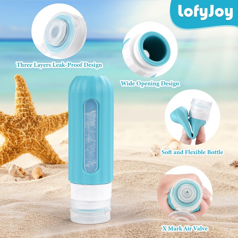 LofyJoy - Botellas de viaje de silicona reutilizables para artículos de cambiador aprobadas por la TSA, botellas de tamaño de viaje a prueba de fugas, recipientes de viaje recargables para champú, acondicionador, mini botellas, artículos esenciales de vi