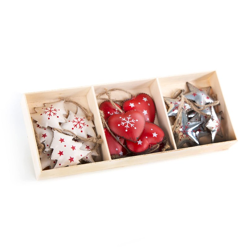 Logbuch-Verlag 18 Christmas Tree Pendants Metal Red White Silver 5 cm Tin Pendant